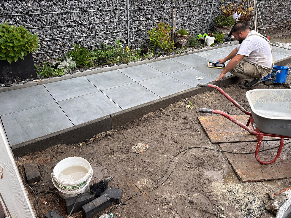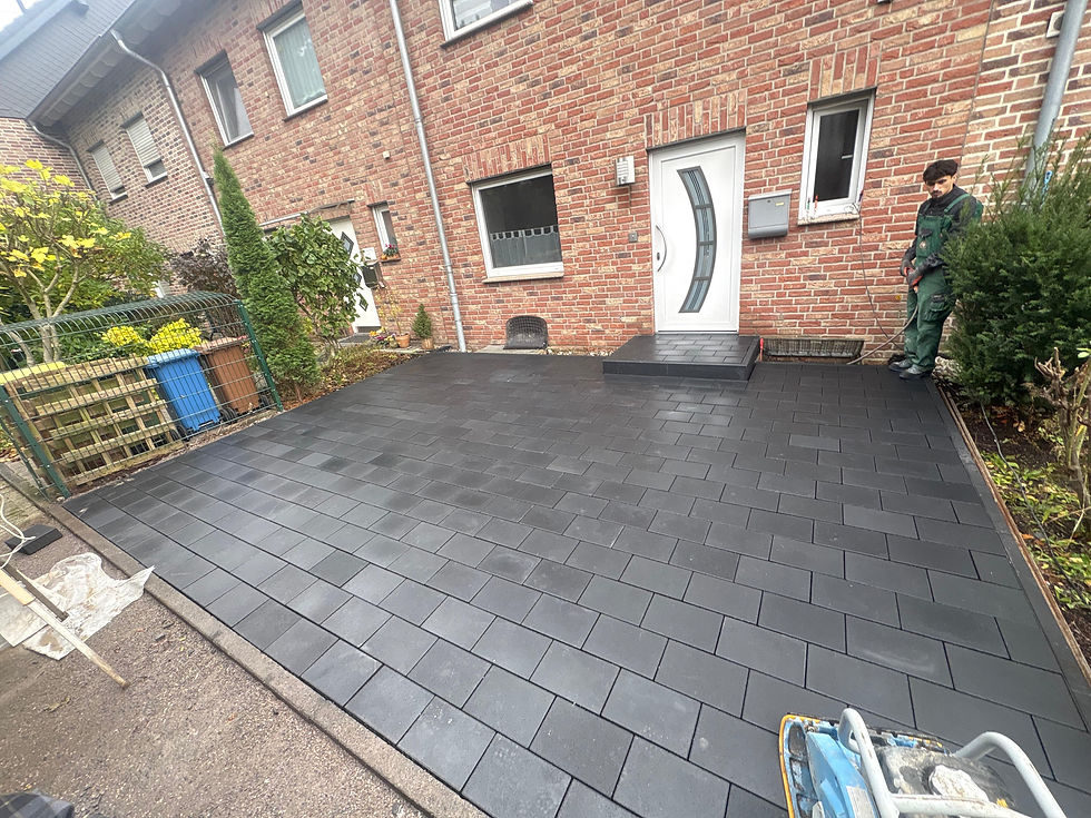 Wir haben den gesamten Bereich neu aufgebaut, Platten präzise verlegt und den Rasen frisch verlegt – langlebig, sauber und mit Liebe zum Detail umgesetzt.