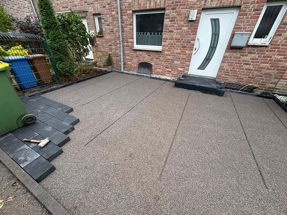Hier haben wir eine Garagenzufahrt komplett umgestaltet. Das Ergebnis: eine moderne, ebene Fläche, die den Eingangsbereich deutlich aufwertet.
